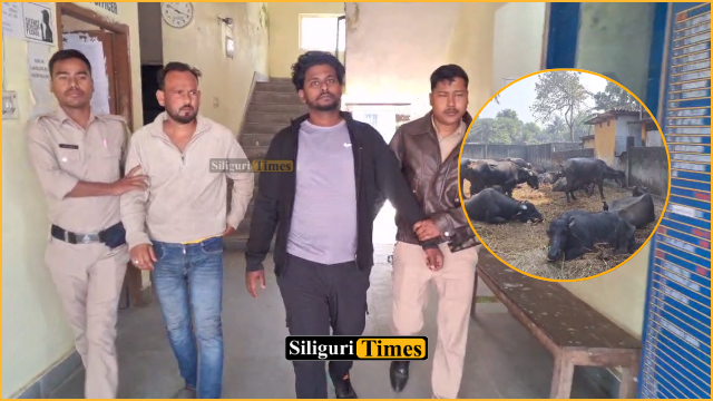 জানা গিয়েছে, খড়িবাড়ির থানঝোড়া চা বাগান সংলগ্ন এলাকায় ১০টি মহিষ সহ দুটি পিকআপ ভ্যান বাজেয়াপ্ত করা হয়েছে। ঘটনায় গ্রেফতার মহম্মদ আফজাল এবং নজরুল আনসারীকে।ধৃতরা নকশালবাড়ি এলাকার বাসিন্দা।
