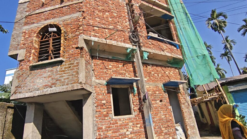 জানা গিয়েছে, বছর খানেক ধরে ওই বহুতল নির্মাণের কাজ চলেছে।এরপরও চোখে পড়েনি ওয়ার্ড কাউন্সিলর বা পুরনিগমের কোনো আধিকারিকের।অভিযোগ, বাড়ির দেওয়ালের সঙ্গে ইলেকট্রিক পোলটিকে এমনভাবে ঘিরে ফেলা হয়েছে যে এখন সেটি বাড়ির অংশ বলেই মনে হচ্ছে।