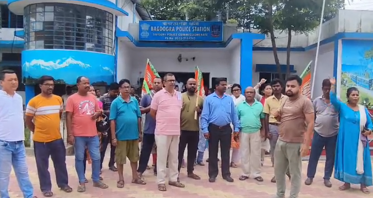 বাগডোগরা, ২০ জুলাইঃ ব্যবসায়ী রাজেশ দে সরকারকে অপহরণ ও হামলার ঘটনায় দোষীদের গ্রেফতারের দাবীতে বাগডোগরা থানায় বিক্ষোভ ও স্মারকলিপি প্রদান করলো বিজেপি।