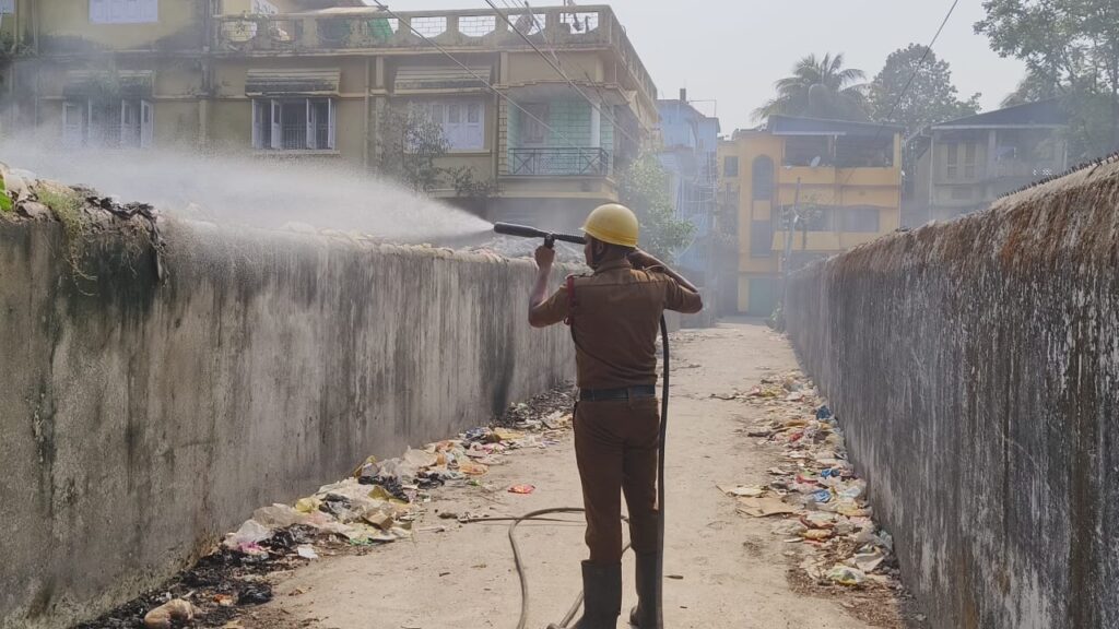 জানা গিয়েছে, রবিবার এলাকার আবর্জনার স্তুপে আগুন দেখতে পান স্থানীয়রা।ঘনবসতি এলাকায় আগুন ছড়িয়ে পড়ার আশঙ্কায় আতঙ্কের পরিবেশ সৃষ্টি হয়।তড়িঘড়ি খবর দেওয়া হয় দমকলে।খবর পেয়ে মাটিগাড়া দমকল কেন্দ্রের একটি ইঞ্জিন পৌঁছে আগুন নিয়ন্ত্রণে আনে।