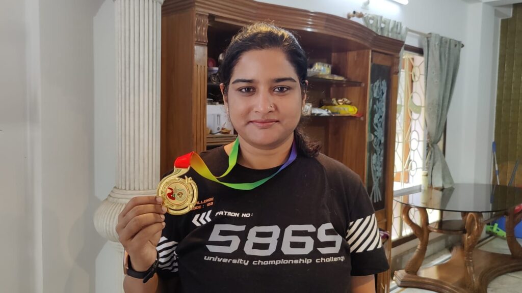 শিলিগুড়ি, ৯ মেঃ বাংলাদেশের ঢাকাতে আয়োজিত দ্বিতীয় বঙ্গমৈত্রী আন্তর্জাতিক আমন্ত্রণমূলক যোগা কাপ প্রতিযোগিতায় স্বর্ণপদক পেয়ে শিলিগুড়ির নাম উজ্জ্বল করলো চন্দ্রা মল্লিক।মঙ্গলবার বাংলাদেশ থেকে শিলিগুড়িতে তাঁর বাড়িতে ফেরেন চন্দ্রা।পুরনিগমের ৩০ নম্বর ওয়ার্ডের দক্ষিণ দেশবন্ধু পাড়ায় তাঁর বাড়ি।বাড়িতে পৌছতেই তাকে সংবর্ধনা জানান পরিবারের সদস্যরা।