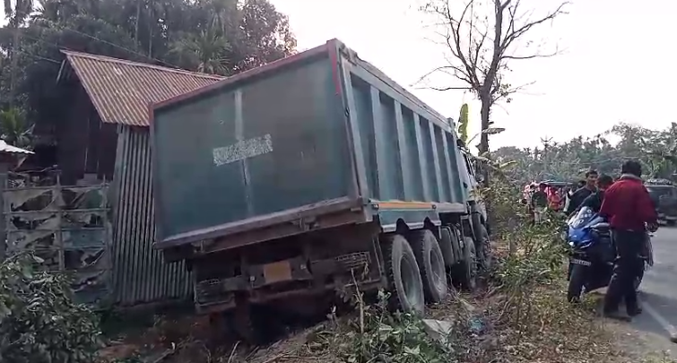 জানা গিয়েছে, শুক্রবার পাথর বোঝাই করে বারোবিশার উদ্দেশ্যে যাচ্ছিল অসম নম্বরের একটি ডাম্পার।রাধানগর মোড় কুলকুলি ব্রিজ এলাকায় নিয়ন্ত্রণ হারিয়ে সৌরভ বর্মনের বাড়িতে ঢুকে পড়ে ডাম্পারটি।দুর্ঘটনার ফলে দুমড়ে মুচরে যায় একটি ঘর।ঘটনার সময় সেই ঘরে কেউ না থাকায় হতাহতের কোন খবর নেই।