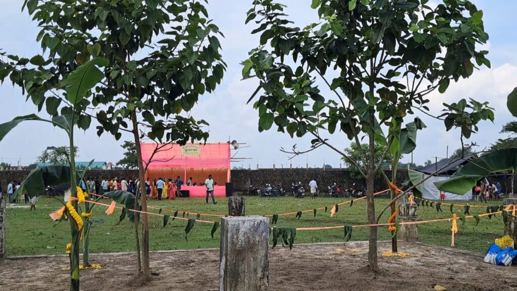 এদিন সেই শ্মশান ঘাটে বেড়ে ওঠা ওই দুই বৃক্ষের বিয়ে উপলক্ষে আমন্ত্রিত ছিলেন সর্ব ধর্মের মানুষ।সকলের জন্য খিচুড়ি প্রসাদের ব্যবস্থাও করা হয়।এছাড়া দূর্গা পূজা উপলক্ষে এলাকার দুঃস্থ শিশুদের হাতে নতুন বস্ত্র ও ১০১টি মশারি তুলে দেওয়া হয়।