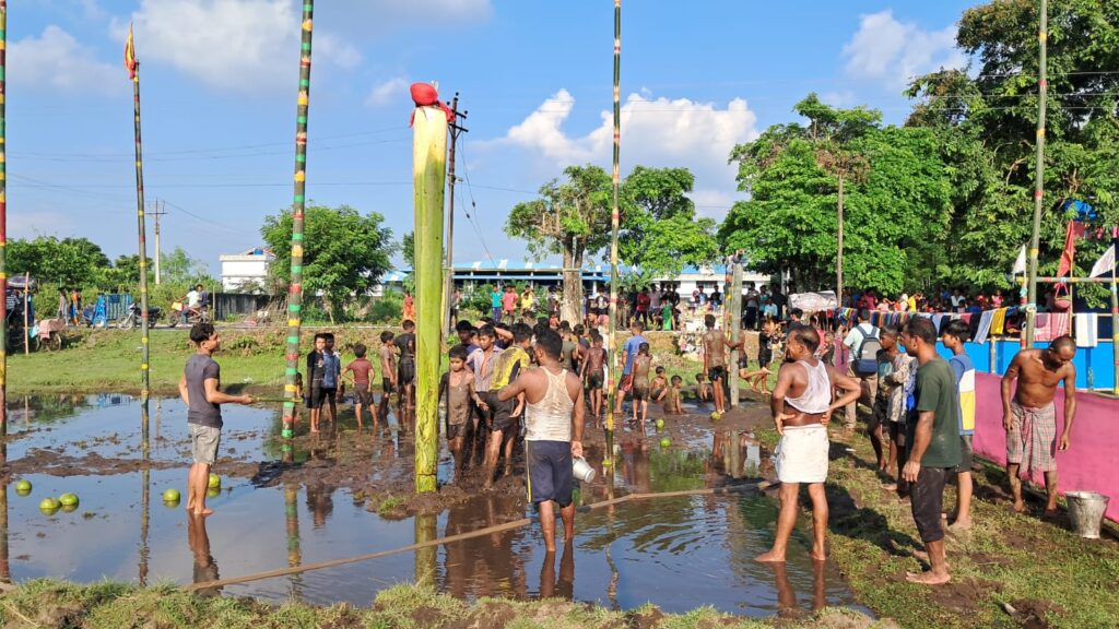 রাজগঞ্জ ব্লকের বিভিন্ন স্থান থেকে বেশ কয়েকটি দল কাঁদা খেলায় অংশগ্রহণ করে। কাঁদা খেলার পাশাপাশি বিভিন্ন ধরনের খেলার আয়োজন করা হয় এবং প্রতিটি খেলায় জয়ী দলকে পুরস্কৃত করা হয়।