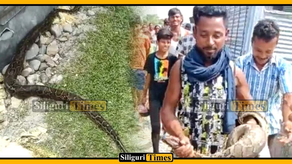 শিলিগুড়ি, ৫ জুনঃশিলিগুড়ি পুরনিগমের ৪৬ নম্বর ওয়ার্ডের সমর নগর দক্ষিণ পলাশ এলাকায় বিশালাকার অজগর উদ্ধার করা হল।ঘটনায় চাঞ্চল্য ছড়ায় এলাকায়।