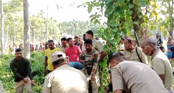 প্রায় দীর্ঘক্ষণের প্রচেষ্টায় বাইসনটিকে ঘুম পাড়ানি গুলি ছুঁড়ে কাবু করে বনকর্মীরা।