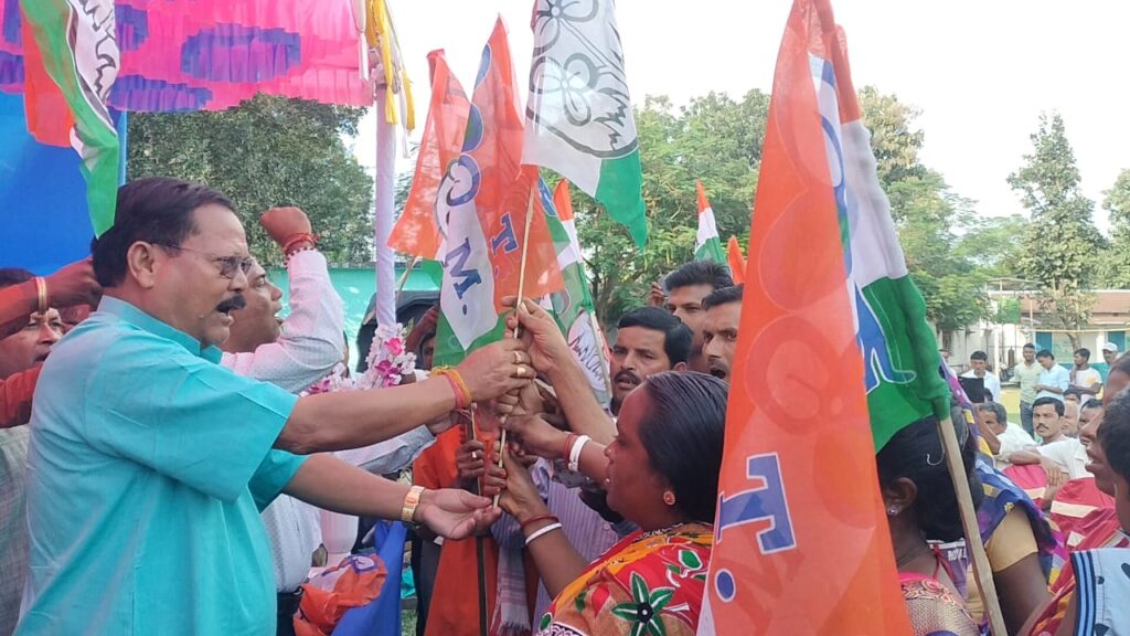 রাজগঞ্জ, ৮ নভেম্বরঃ বিজেপি ছেড়ে তৃণমূলে যোগদান করলো ৪০টি পরিবার।শুক্রবার রাজগঞ্জ ব্লকের মান্তাদাড়ি গ্রামপঞ্চায়েতের দুধিয়া গ্রামে এই যোগদান সভার আয়োজন করা হয়।এদিন তৃণমূল কংগ্রেসের জলপাইগুড়ি জেলার চেয়ারম্যান তথা রাজগঞ্জের বিধায়ক খগেশ্বর রায়ের হাত ধরে ভারতীয় জনতা পার্টির কর্মী সমর্থকরা তৃণমূলে যোগদান করেন।