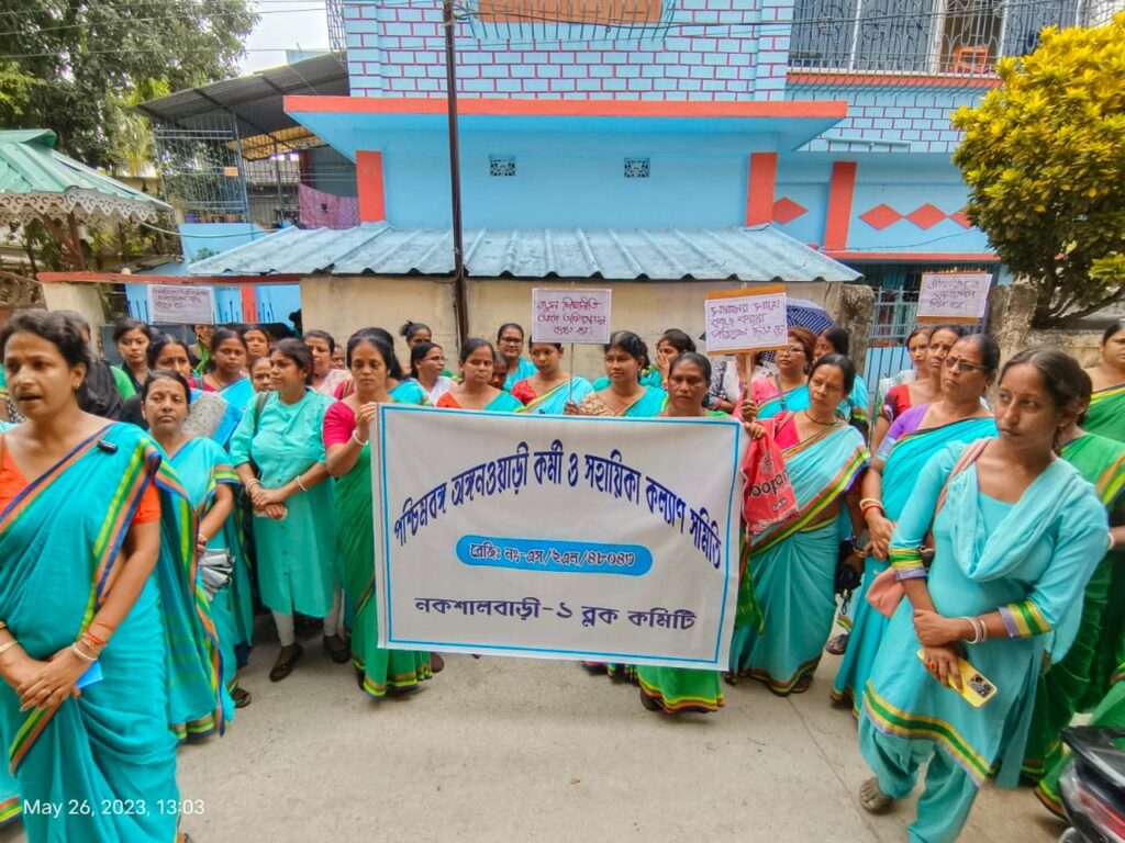পশ্চিমবঙ্গ অঙ্গনওয়াড়ি কর্মী ও সহায়িকা কল্যাণ সমিতির উদ্যোগে নকশালবাড়ি ব্লক ১ কমিটির পক্ষ থেকে ২৩ দফা দাবিতে সিডিপিও এর হাতে স্মারকলিপি তুলে দেওয়া হয়।অঙ্গনওয়ারী কর্মীর ন্যূনতম ২১ হাজার টাকা ও সহায়িকার জন্য ১৮ হাজার টাকা বেতন ধার্য করতে হবে। প্রতিমাসের এক তারিখেই বেতন দিতে হবে। অবিলম্বে প্রশিক্ষণ সহ উপযুক্ত সম্মানিক দিতে হবে। অবসরকালীন ৫ লক্ষ টাকা দিতে হবে বলে দাবি করা হয় স্মারকলিপিতে।