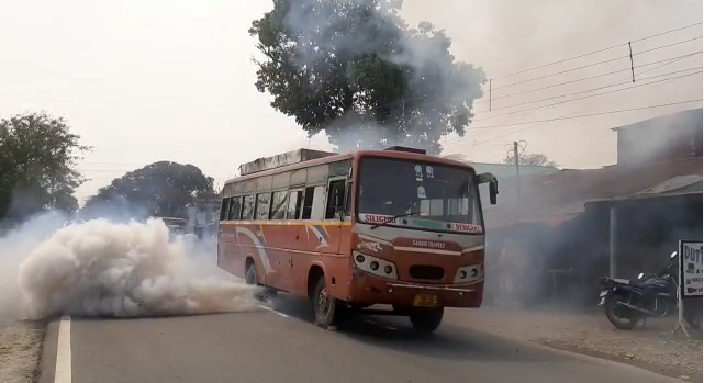 জানা গিয়েছে, শুক্রবার গলগলিয়া থেকে শিলিগুড়ির দিকে আসছিল একটি যাত্রীবাহী বাস।সেইসময় খড়িবাড়ির বাতাসী জাতীয় সড়কে আচমকাই বাস থেকে ধোঁয়া বের হতে থাকে।ঘটনায় আতঙ্ক ছড়ায় যাত্রীদের মধ্যে।মূহুর্তের মধ্যে ধোঁয়ায় ঢেকে যায় জাতীয় সড়ক।বাস থেকে নেমে পড়েন বাসের যাত্রীরা।ঘটনার জেরে যানজটের সৃষ্টি হয়।