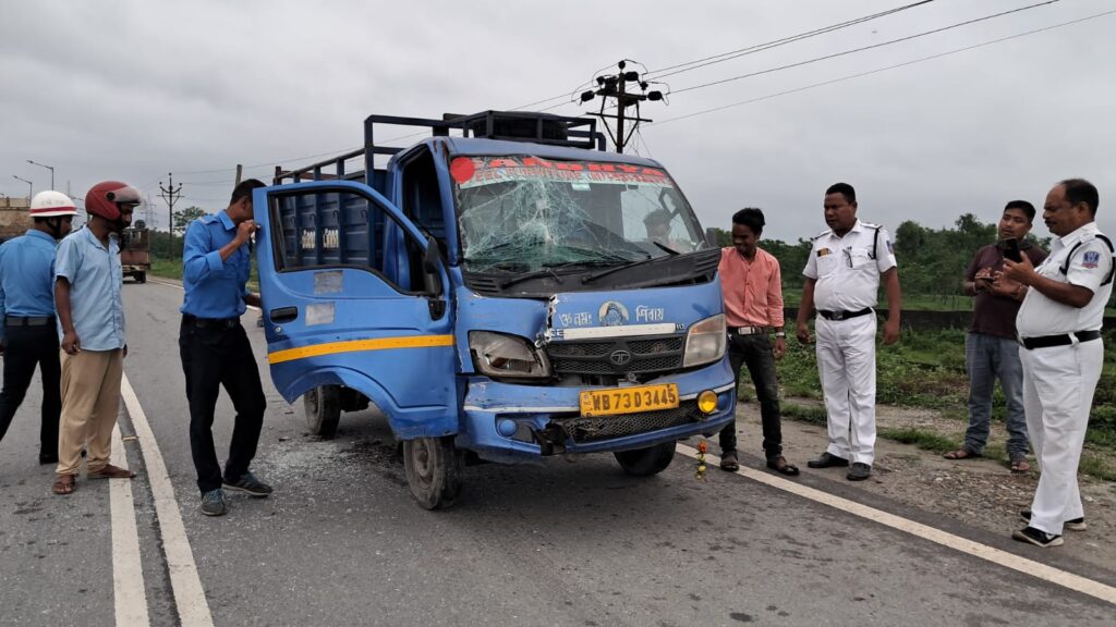 জানা গিয়েছে, একটি ছোট মালবাহী গাড়ি ক্যানেল মোড়ের দিক থেকে নাওয়াপাড়ার দিকে যাচ্ছিল।সেই সময় সামনে থাকা একটি বড় মালবাহী গাড়ি ব্রেক করে দাঁড়িয়ে পড়লে পেছনে থাকা ছোট্ট মালবাহী গাড়িটি গিয়ে ধাক্কা মারে।দুমড়ে মুচড়ে যায় ছোটো গাড়িটি।ঘটনায় আহত হন ছোটো গাড়ির চালক।