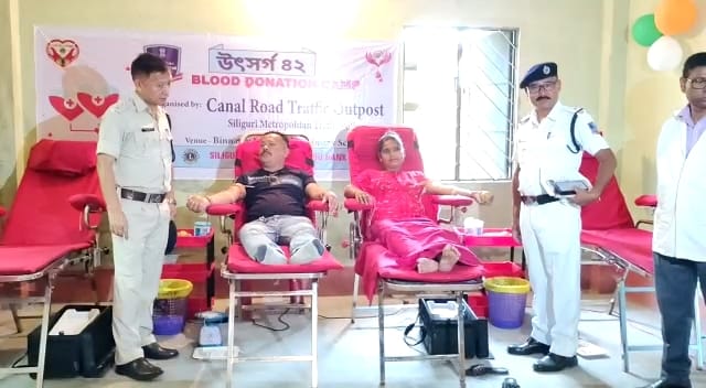 রাজগঞ্জ, ২০ মেঃ ক্যানেল রোড ট্রাফিক আউট পোস্টের উদ্যোগে “উৎসর্গ” রক্তদান শিবিরের আয়োজন। শনিবার বিন্নাগুড়ি নাওয়াপাড়া প্রাথমিক বিদ্যালয়ের প্রাঙ্গণে এই রক্তদান শিবিরের আয়োজন করা হয়। এদিনের রক্তদান শিবিরের পুলিশ কর্মীদের পাশাপাশি সাধারণ মানুষেরাও রক্তদান করেন।