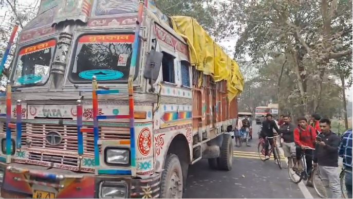 খড়িবাড়ি, ১৬ জানুয়ারি: সরস্বতী পুজোর চাঁদা তুলতে গিয়ে ট্রাকের চাকায় পিষ্ট হয়ে মৃত্যু হল এক স্কুল পড়ুয়ার। খড়িবাড়ির বাংলা বিহার সীমান্তে ভালুকগাড়ার ঘটনা। বৃহস্পতিবার দুপুরে বিহার থেকে খড়িবাড়ির দিকে আসা একটি ট্রাকের চাকায় পিষ্ট হয়ে এই মর্মান্তিক মৃত্যু হয় পড়ুয়ার। ঘটনায় ট্রাফিক পুলিশের বিরুদ্ধে ক্ষোভ প্রকাশ করেছেন স্থানীয়রা। মৃত পড়ুয়ার নাম সূর্য গির। খড়িবাড়ি হাইস্কুলের দশম শ্রেণীর ছাত্র। রাস্তায় গাড়ি ও ট্রাক চালকদের থেকে চাঁদা তুলছিল পড়ুয়ারা।