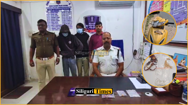 শিলিগুড়ি, ২০ জানুয়ারিঃ চুরির ঘটনার পর্দাফাঁস করলো শিলিগুড়ি মেট্রোপলিটন পুলিশের খালপাড়া ফাঁড়ির পুলিশ। দুটি চুরির ঘটনায় গ্রেফতার দুই চোর।উদ্ধার হয়েছে চুরি যাওয়া সোনা-রুপোর অলঙ্কার এবং একটি স্কুটি।