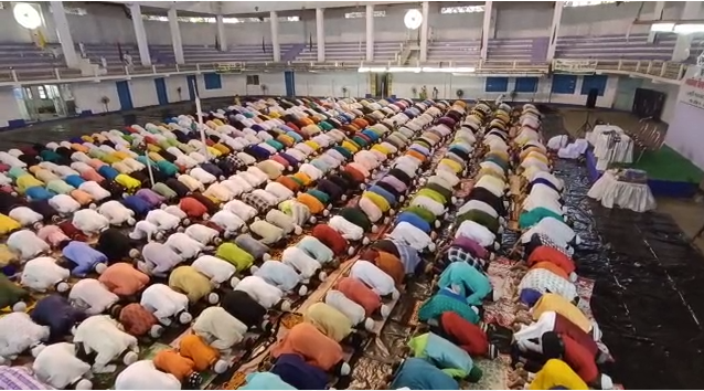 এদিন সকাল ৯ টা নাগাদ ঈদের নামাজ শুরু হয়।নামাজের পর একে অপরকে ঈদের শুভেচ্ছা জানান সকলে।