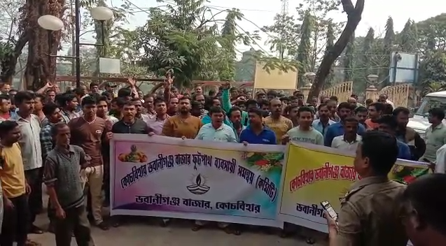 কোচবিহার, ৩১ জানুয়ারিঃ কর বৃদ্ধি করা নিয়ে কোচবিহার জেলাশাসক দপ্তরের সামনে বিক্ষোভ দেখালো ফুটপাত ব্যবসায়ীরা।কোচবিহার ভবানীগঞ্জ বাজার ফুটপাত ব্যবসায়ী সমন্বয় কমিটির পক্ষ থেকে মঙ্গলবার একটি মিছিল করে জেলাশাসক দপ্তরের সামনে বিক্ষোভে সামিল হন তারা।কর বৃদ্ধি নিয়ে জেলাশাসক স্মারকলিপিও প্রদান করেন।