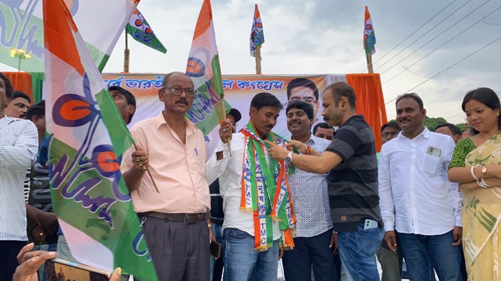ফুলবাড়ি, ৬ আগস্টঃ পঞ্চায়েত নির্বাচনে ভোটে জয়ী সিপিএমের প্রার্থী যোগদান করলো তৃণমূলে।রবিবার ফুলবাড়ি মোড়ে তৃণমূলের যোগদান সভায় আয়োজন করা হয়। ফুলবাড়ি ২ নম্বর গ্রাম পঞ্চায়েতের কালাঙ্গীনির ১৯/ ৩০৬ নং বুথের সিপিএম প্রার্থী মোমিরুল ইসলাম আজ তৃণমূলে যোগদান করেন। জলপাইগুড়ি জেলা তৃণমূল কংগ্রেসের সাধারণ সম্পাদক দেবাশীষ প্রামাণিক তার হাতে দলীয় পতকা তুলে দেন।এছাড়াও এদিন তার সঙ্গে প্রায় তিনশতাধিক কর্মী সমর্থক সিপিএমে যোগদান করেন।