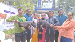 রাজগঞ্জ, ১৮ জানুয়ারিঃ ১৬ জনকে গৃহপালিত প্রাণী বিতরণ করলো রাজগঞ্জের প্রাণী সম্পদ বিকাশ বিভাগ। বৃহস্পতিবার রাজগঞ্জের পঞ্চায়েত সমিতির উদ্যোগে এবং প্রাণী সম্পদ বিকাশ বিভাগের ব্যবস্থাপনায় রাজগঞ্জ বিডিও অফিসে গরু এবং শুকরছানা বিলি করা হয়। এদিন রাজগঞ্জের সুখানি ও শিকারপুর গ্রাম পঞ্চায়েতে এলাকার ৬ জনকে একটি করে গরু ও মান্তাদাড়ি গ্রাম পঞ্চায়েতের ১০ জনকে দুটি করে শুকর ছানা দেওয়া হয়।