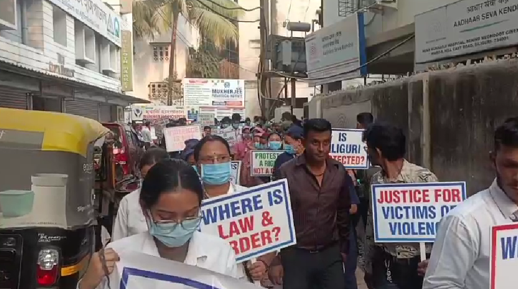 শিলিগুড়ি, ২৮ ফেব্রুয়ারিঃ শিলিগুড়িতে এক চিকিৎসকের উপর হামলার ঘটনায় প্রতিবাদে রাস্তায় নামলেন সহকর্মীরা।অভিযুক্তদের দ্রুত গ্রেফতার করে দৃষ্টান্তমূলক শাস্তির দাবী জানান তারা।