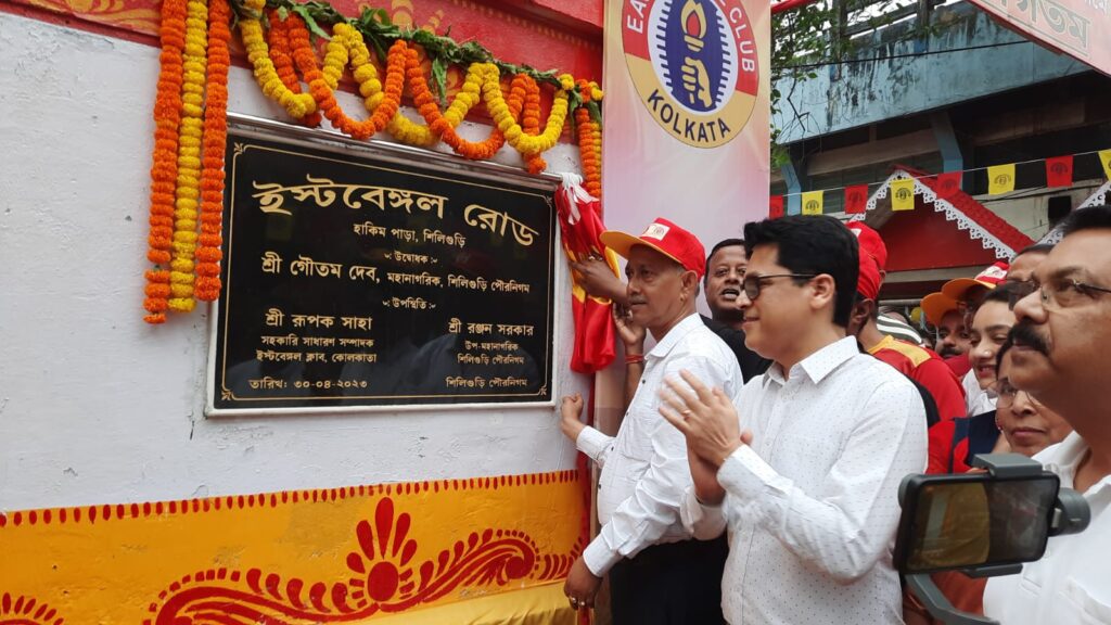 শিলিগুড়ি, ৩০ এপ্রিলঃ শিলিগুড়িতে ইস্টবেঙ্গল রোডের উদ্বোধন হল আজ।শিলিগুড়ি পুরনিগমের উদ্যোগে ও শিলিগুড়ি ইস্টবেঙ্গলের ফ্যান ক্লাবের সহযোগিতায় অনুষ্ঠানের আয়োজন করে ইস্টবেঙ্গল রোডের উদ্বোধন করা হল।রাস্তার উদ্বোধন করেন পুরনিগমের মেয়র গৌতম দেব, ডেপুটি মেয়র রঞ্জন সরকার সহ ইস্টবেঙ্গল ক্লাবের বিশিষ্ট সদস্যরা।