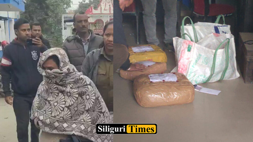 জানা গিয়েছে, বুধবার বিকেলে মাটিগাড়া থানা অন্তর্গত সুটকি গোডাউন সংলগ্ন এলাকা থেকে লক্ষাধিক টাকার গাঁজা সহ মহিলাকে গ্রেফতার করে পুলিশ।ধৃত মহিলার নাম কিরণ দেবী।বিহারের বাসিন্দা।গত একবছর ধরে শিলিগুড়িতে রয়েছে।আয়ার কাজ করতো মহিলা।