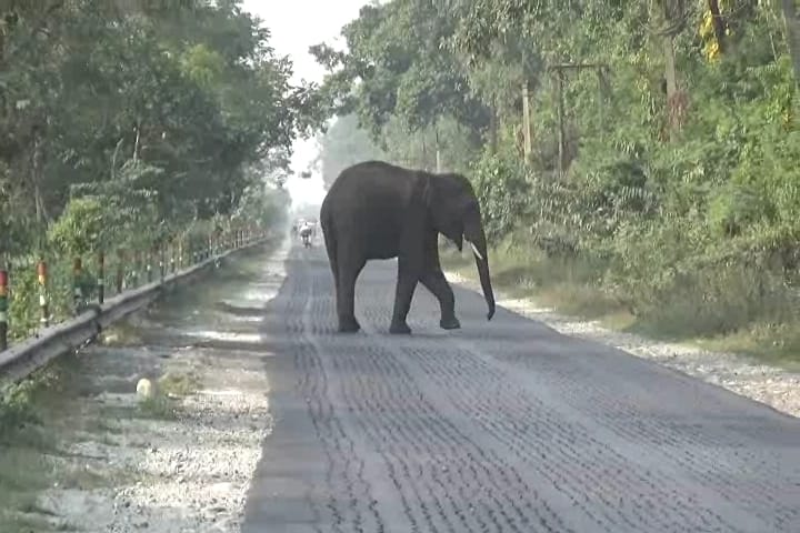 গজলডোবা, ৪ নভেম্বরঃ গাজলডোবা যাওয়ার পথে রাস্তায় হাতি।হাতি দেখতে পেয়ে খুশি পথ চলতি মানুষ থেকে পর্যটকেরা।