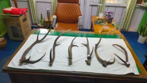 আমবাড়ি, ২৮ নভেম্বরঃ ক্রেতা সেজে বনকর্মীদের অভিযান।৬ টি হরিণের শিং সহ দুজনকে গ্রেফতার করলো আমবাড়ি রেঞ্জের বনকর্মীরা।