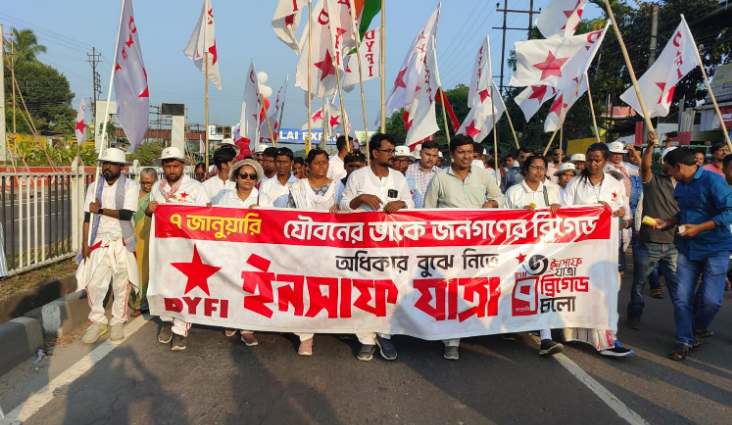 বাগডোগরা, ৭ নভেম্বরঃ কাজ ও শিক্ষার দাবিতে ডিওয়াইএফআইয়ের ইনসাফ যাত্রা মঙ্গলবার শিলিগুড়ি হয়ে বাগডোগরায় এসে পৌঁছল।এদিন গোঁসাইপুর থেকে বাগডোগরা বিহার মোড় পর্যন্ত পায়ে হেঁটে ইনসাফ যাত্রায় অংশ নেন ডিওয়াইএফআইয়ের রাজ্য সম্পাদিকা মিনাক্ষী মুখার্জি।