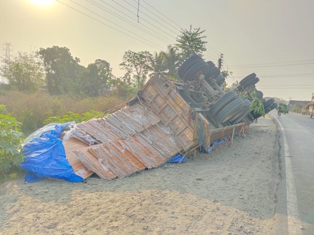 জানা গিয়েছে, এদিন ভোরে নিয়ন্ত্রণ হারিয়ে রাস্তার পাশে উল্টে যায় লরিটি।রাস্তা ছোট থাকার কারণেই বারবার দুর্ঘটনা ঘটছে বলে জানান গাড়ির চালক এবং স্থানীয়রা।যদিও ঘটনায় হতাহতের কোনো খবর নেই।