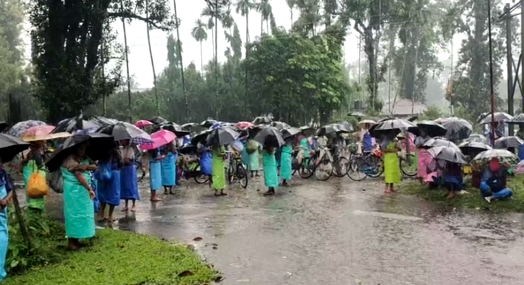 কালচিনি, ২২ সেপ্টেম্বরঃ চা বলয়ের শ্রমিকদের ২০ শতাংশ পুজোর বোনাসের দাবীতে শুক্রবার সকাল থেকে কালচিনি ব্লকের বিভিন্ন চা বাগানে প্রবল বৃষ্টিকে উপেক্ষা করে গেট মিটিংয়ে সামিল হল তৃণমূল চা বাগান শ্রমিক ইউনিয়ন।