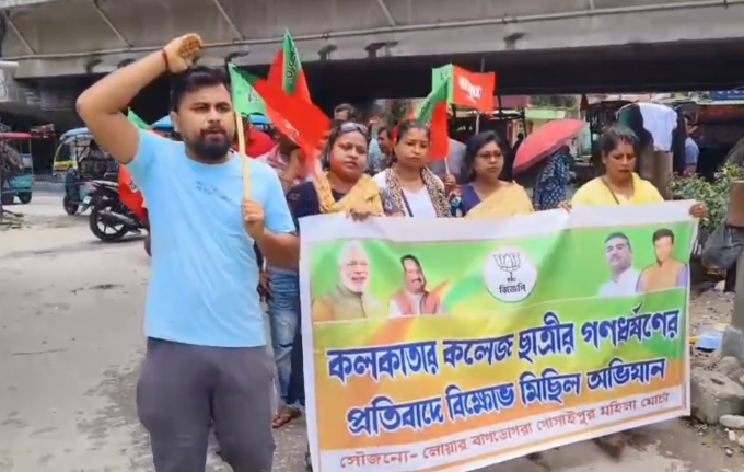 শনিবার লোয়ার বাগডোগরা গোঁসাইপুর মন্ডল বিজেপি মহিলা মোর্চার নেতৃত্বে মিছিল করে বাগডোগরা থানায় গিয়ে বিক্ষোভ প্রদর্শন করা হয়।অভিযোগ, কলকাতার ল কলেজে ছাত্রীকে গণধর্ষণের ঘটনায় অভিযুক্তরা শাসকদলের ছত্রছায়ায় থাকায় এই ধরনের কাজ করেছে।