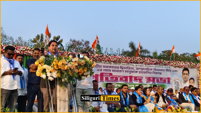 ফুলবাড়ি, ২৯ জানুয়ারিঃ কেন্দ্রীয় সরকারের দ্বিচারিতা, সাম্প্রদায়িক বিভাজনের রাজনীতি এবং SIR-এর নামে সাধারণ মানুষকে হয়রানির প্রতিবাদে বৃহস্পতিবার বিশাল প্রতিবাদ সভার আয়োজন করল তৃণমূল কংগ্রেসের সংখ্যালঘু শাখা। জলপাইগুড়ি জেলা সংখ্যালঘু তৃণমূল কংগ্রেসের ডাকে এবং ডাবগ্রাম ফুলবাড়ি তৃণমূল কংগ্রেসের সংখ্যালঘু কমিটির সহযোগিতায় ফুলবাড়ির চুনাভাটির ফুটবল ময়দানে এই প্রতিবাদ সভা অনুষ্ঠিত হয়।