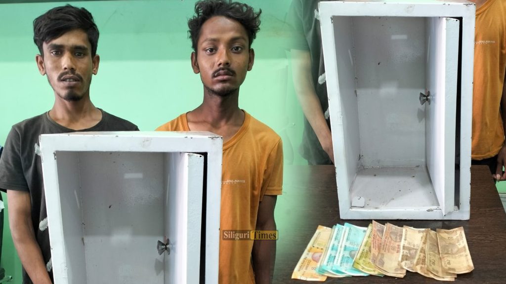 জানা গিয়েছে, শনিবার রাতে মন্দিরের সিসি টিভির কানেকশন কেটে তালা ভেঙ্গে মন্দিরে প্রবেশ করে দুষ্কৃতিরা।মন্দিরে থাকা দানপাত্র নিয়ে চম্পট দেয়।সেই ঘটনার তদন্তে নেমে সোমবার রাতে দুজনকে গ্রেফতার করে ভক্তিনগর থানার পুলিশ।ধৃতদের কাছ থেকে মন্দির থেকে চুরি হাওয়া দানপাত্র এবং টাকা উদ্ধার হয়েছে।