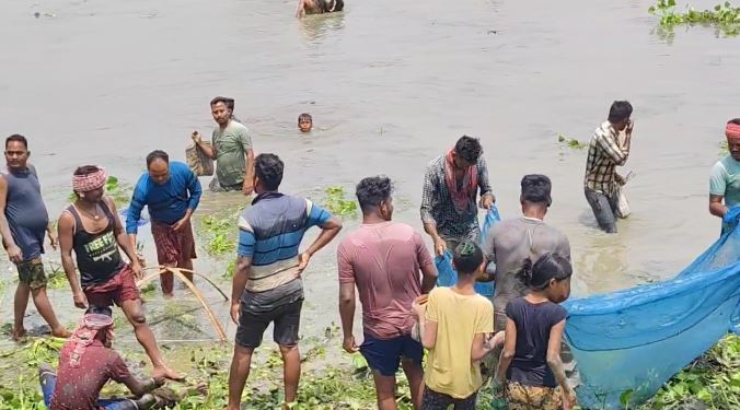 কোন কারণবশত আজ সকাল থেকে ফুলবাড়ী মহানন্দা নদীর জল কমে যায়। আর সেই সুযোগকে কাজে লাগিয়ে ফুলবাড়ি সংলগ্ন বড়পথু দারাবক্স সহ বিভিন্ন এলাকার বাসিন্দারা নেমে পড়েন মাছ ধরতে। এই খবর ছড়িয়ে পড়তেই ছুটে আসেন আশপাশের স্থানীয় বাসিন্দারাও।