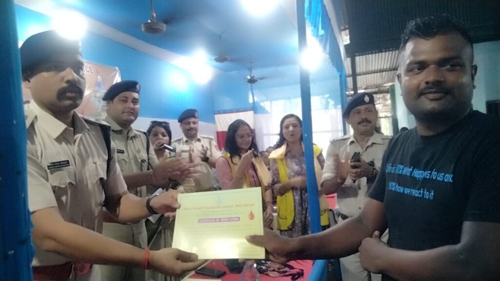 রাজগঞ্জ,১৫ সেপ্টেম্বরঃ জলপাইগুড়ি জেলা পুলিশের উদ্যোগে “উৎসর্গ” রক্তদান শিবিরের আয়োজন। জলপাইগুড়ি জেলা পুলিশের রাজগঞ্জ থানার অধীন বেলাকোবা পুলিশ ফাঁড়ির পরিচালনায় এদিন স্বেচ্ছায় রক্তদান শিবিরের আয়োজন করা হয়। সেইসঙ্গে বিনামূল্যে স্বাস্থ্য পরীক্ষা শিবির ও মশারি বিতরণ করা হয়। শুক্রবার এই কর্মসূচি করা হয় বেলাকোবা হরিমন্দিরের সভাকক্ষে।