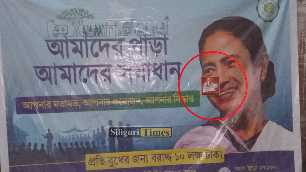 খড়িবাড়ি, ১৩ ফেব্রুয়ারিঃ ‘আমাদের পাড়া আমাদের সমাধান’ প্রকল্পের ফ্লেক্সে মুখ্যমন্ত্রীর মুখে বিজেপির পোস্টার সাঁটানো ঘিরে বিতর্ক খড়িবাড়িতে।খড়িবাড়ির নেতাজীপল্লী গ্ৰামের ঘটনা।ঘটনায় উত্তেজনা সৃষ্টি হয়।