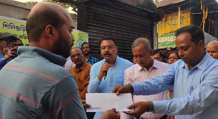 এদিন নকশালবাড়ি বাজারে শিলিগুড়ি পুরনিগম এবং শিলিগুড়ি মহকুমা পরিষদের তরফে প্রত্যেক ক্ষতিগ্রস্ত ব্যবসায়ীকে ৪০হাজার টাকার চেক প্রদান করেন মেয়র গৌতম দেব, মহকুমা পরিষদের সভাধিপতি অরুণ ঘোষ সহ পুরনিগমের কাউন্সিলর ও মহকুমা পরিষদের কর্মাধ্যক্ষরা।