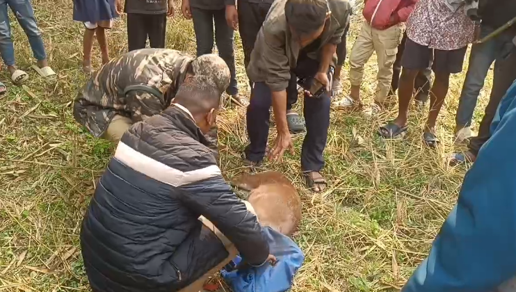 নকশালবাড়ি, ১০ ফেব্রুয়ারিঃ জঙ্গল থেকে বেড়িয়ে লোকালয়ে হরিণ।নকশালবাড়ির হাতিঘিসার হুচাইমল্লিক জোতে হরিণ উদ্ধার করলো স্থানীয়রা।