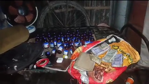 জানা গিয়েছে, সোমবার রাতে গোপন সূত্রের খবরের ভিত্তিতে ব্যক্তির গোডাউনে হানা দেয় খড়িবাড়ি থানার পুলিশ।গোডাউন থেকে ৪১বোতল কাফ সিরাপ ও ভারতীয় ১ লক্ষ ২০ হাজার টাকা সহ নেপালের ৪ হাজার ৩০০ টাকা উদ্ধার হয়েছে।ঘটনায় ব্যক্তিকে গ্রেফতার করা হয়।