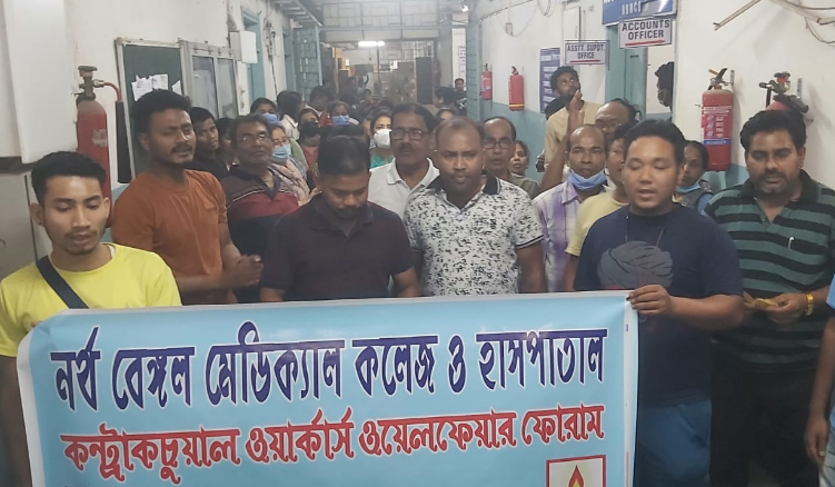 শিলিগুড়ি, ১০ এপ্রিলঃ স্ব-বেতন ছুটি, স্থায়ীকরণ সহ একাধিক দাবীতে আন্দোলনে সরব হল নর্থ বেঙ্গল মেডিক্যাল কলেজ ও হাসপাতাল কন্ট্রাকচুয়াল ওয়ার্কার্স ওয়েলফেয়ার ফোরাম।