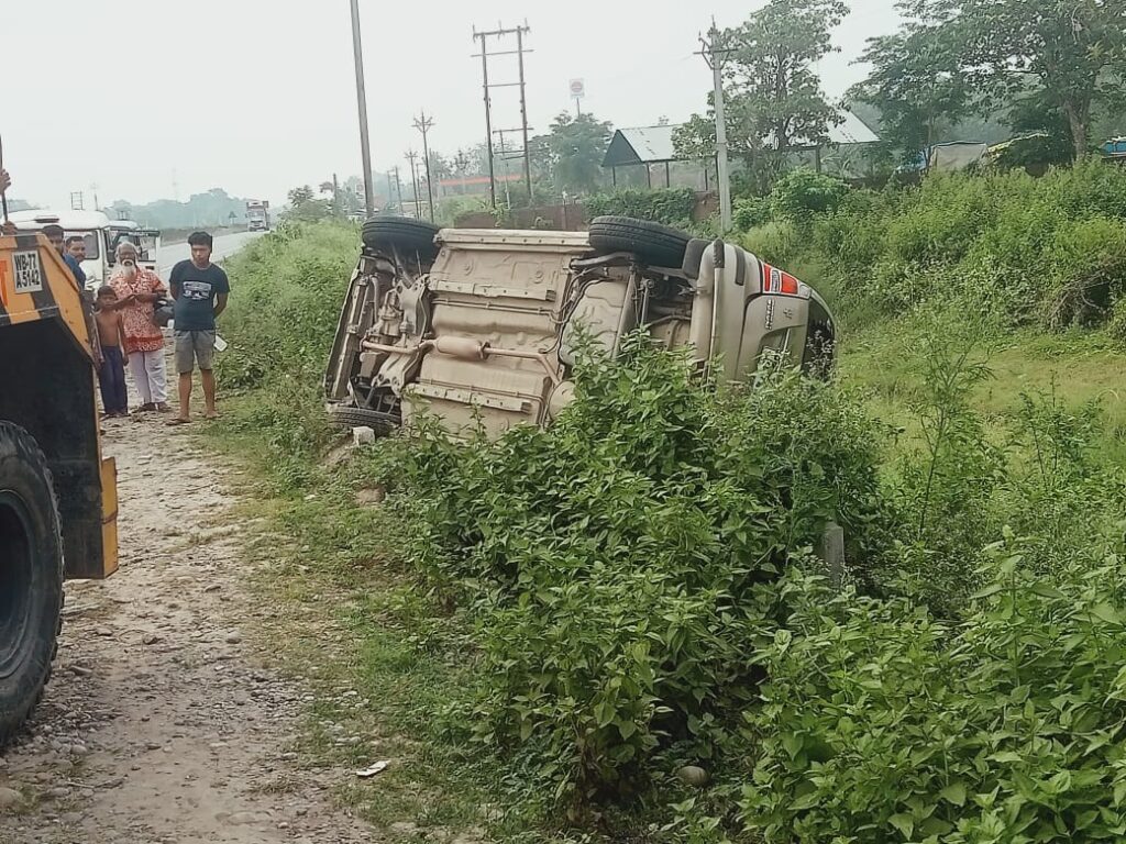 জানা গিয়েছে, জলপাইগুড়ি দিক থেকে একটি চারচাকা গাড়ি শিলিগুড়ির দিকে আসছিল।সেই সময় গাড়ির পেছনের একটি চাকা খুলে যায়।ফলে নিয়ন্ত্রণ হারিয়ে গাড়িটি রাস্তার পাশে নয়ানজুলিতে উল্টে যায়।