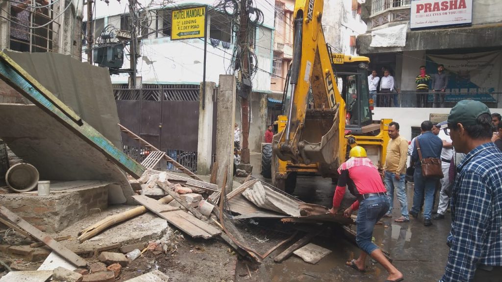 যদিও বহুতলের মালিক তারকেশ্বর গুপ্তা বলেন, পুরনিগমের তরফে কোনো নোটিশ দেওয়া হয়নি। হাইকোর্টে মামলা চলছে। পুরনিগমের কমিশনারকে জানানোর পরও নির্মাণ ভেঙে দেওয়া হয়।