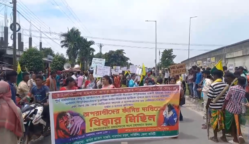 ফাঁসিদেওয়া, ২৭ আগস্টঃ আরজি কর মেডিক্যাল কলেজের ঘটনায় দোষীদের শাস্তির দাবি সহ বর্ধমানের ঝাপানতলা গ্রামের আদিবাসী মহিলাকে নৃশংসভাবে হত্যার প্রতিবাদে বিক্ষোভ ও প্রতিবাদ মিছিল করলো ভারত জাকাৎ মাঞ্জহি পরগনা।