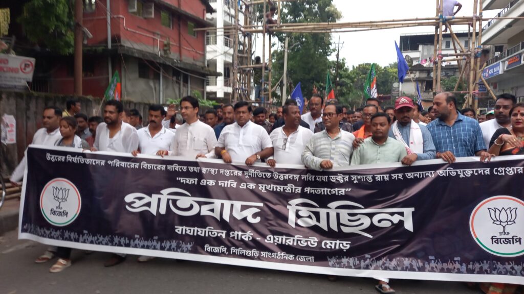 শিলিগুড়ি, ২৪ সেপ্টেম্বরঃ উত্তরবঙ্গে ক্রমবর্ধমান নারী নির্যাতন, দুর্নীতিতে জড়িত ডঃ সুশান্ত রায়ের গ্রেফতারি এবং আরজি কর কান্ডে মুখ্যমন্ত্রীর পদত্যাগের দাবিতে শিলিগুড়িতে মহামিছিল করলো বিজেপি।এদিন মিছিলে উপস্থিত ছিলেন বিজেপির রাজ্য সভাপতি তথা কেন্দ্রীয় প্রতিমন্ত্রী সুকান্ত মজুমদার।
