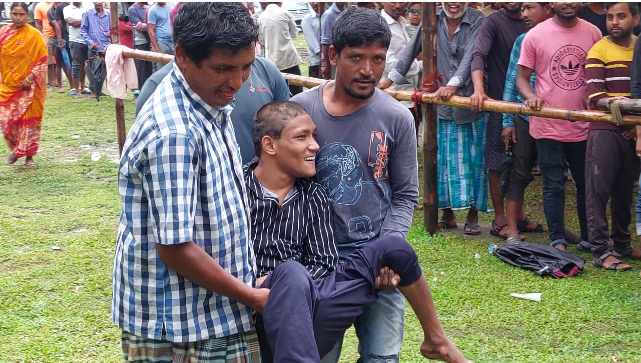 শিলিগুড়ি,১০ জুলাইঃ হাঁটতে পারেন না।তবুও সন্ত্রাসের মধ্যেও শনিবার ভোট দিতে এসেছিলেন।পরে যখন জানতে পারেন যে, সেই ব্যালট বক্স জলে ফেলে দেওয়া হয়েছে।তারপর সোমবার পুননির্বাচনের দিনও প্রতিবেশীদের কোলে করে ভোট দিতে এলেনে ওসরুল হক। এবার তার প্রথম ভোট।