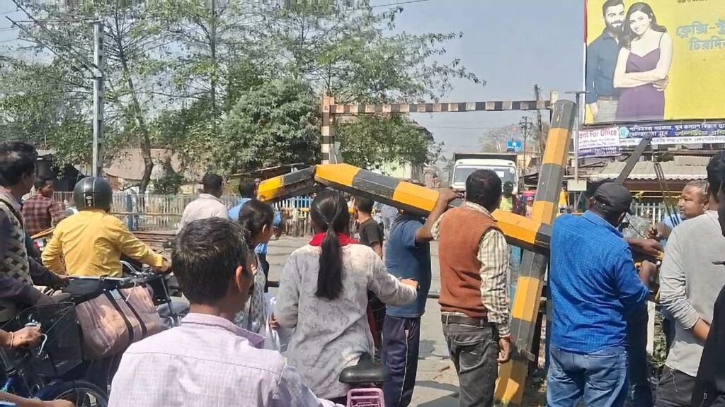 রাজগঞ্জ, ২৫ ফেব্রুয়ারিঃ রেলগেটের একাংশ ভেঙে পড়ায় বিপত্তি।প্রায় আধ ঘন্টা বন্ধ থাকলো বেলাকোবা রেলগেট।ফলে দীর্ঘ সময় যানজটে আটকে পড়ে নাজেহাল হলেন পথ চলতি মানুষ ও গাড়ি চালকেরা।রবিবার ঘটনাটি ঘটে রাজগঞ্জের বেলাকোবার রেলগেটে।