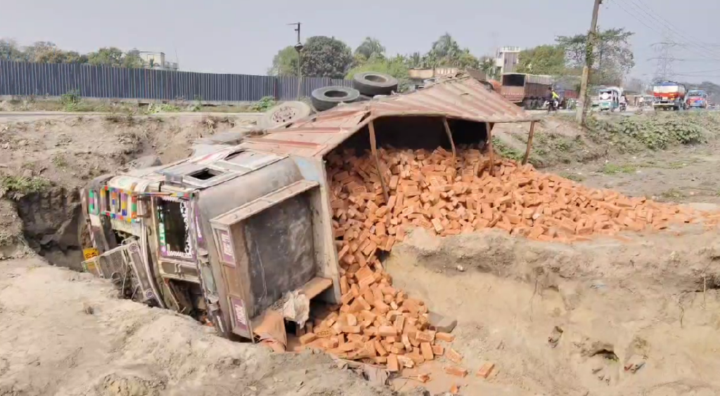 জানা গিয়েছে, বিহার থেকে ইট বোঝাই করে একটি লরি জলপাইগুড়ি দিকে যাচ্ছিল। ভোররাতে ফুলবাড়ির আমায়দিঘী এলাকায় পৌঁছতেই আচমকা চালক নিয়ন্ত্রণ হারিয়ে ফেলেন। ফলে লরিটি রাস্তার পাশের গর্তে পড়ে উল্টে যায়। তবে এই ঘটনায় কোনও হতাহতের খবর পাওয়া যায়নি।