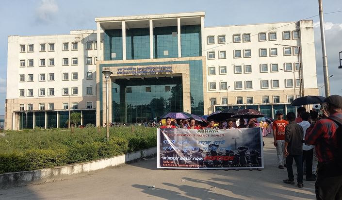 উত্তরবঙ্গ মেডিক্যাল কলেজ ও হাসপাতালের সুপার স্পেশালিটি ব্লক থেকে শুরু করে মেডিক্যাল কলেজ চত্বর হয়ে জরুরি বিভাগের সামনে দিয়ে পুনরায় সেই জায়গায় গিয়ে তাদের মিছিল শেষ হয়।