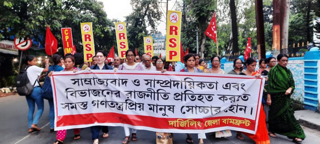 শিলিগুড়ি, ১ সেপ্টেম্বরঃ সাম্প্রদায়িক ও বিভাজনের রাজনীতি বন্ধ হোক এই দাবিতে মিছিল করলো দার্জিলিং জেলা বামফ্রন্ট।