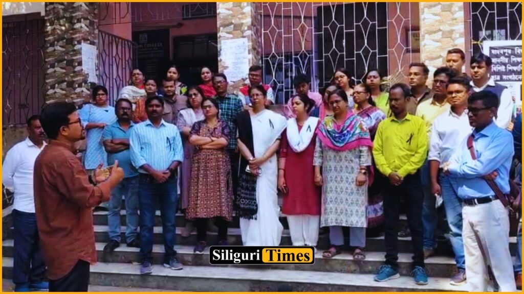 এদিন সমস্ত অধ্যাপক অধ্যাপিকারা একত্রিত হয়ে বাম সংগঠনের বিরুদ্ধে ক্ষোভ প্রকাশ করেন।