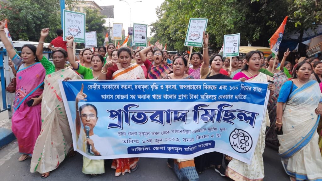 শিলিগুড়ি, ১৩ জুনঃ কেন্দ্রের বিরুদ্ধে বঞ্চনার অভিযোগ তুলে এবং একাধিক দাবীতে শিলিগুড়িতে প্রতিবাদ মিছিল দার্জিলিং জেলা মহিলা তৃণমূল কংগ্রেসের।